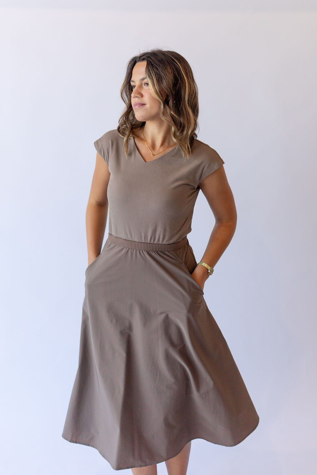 Kaitlyn Cap Sleeve Dress -Brown - Image 3
