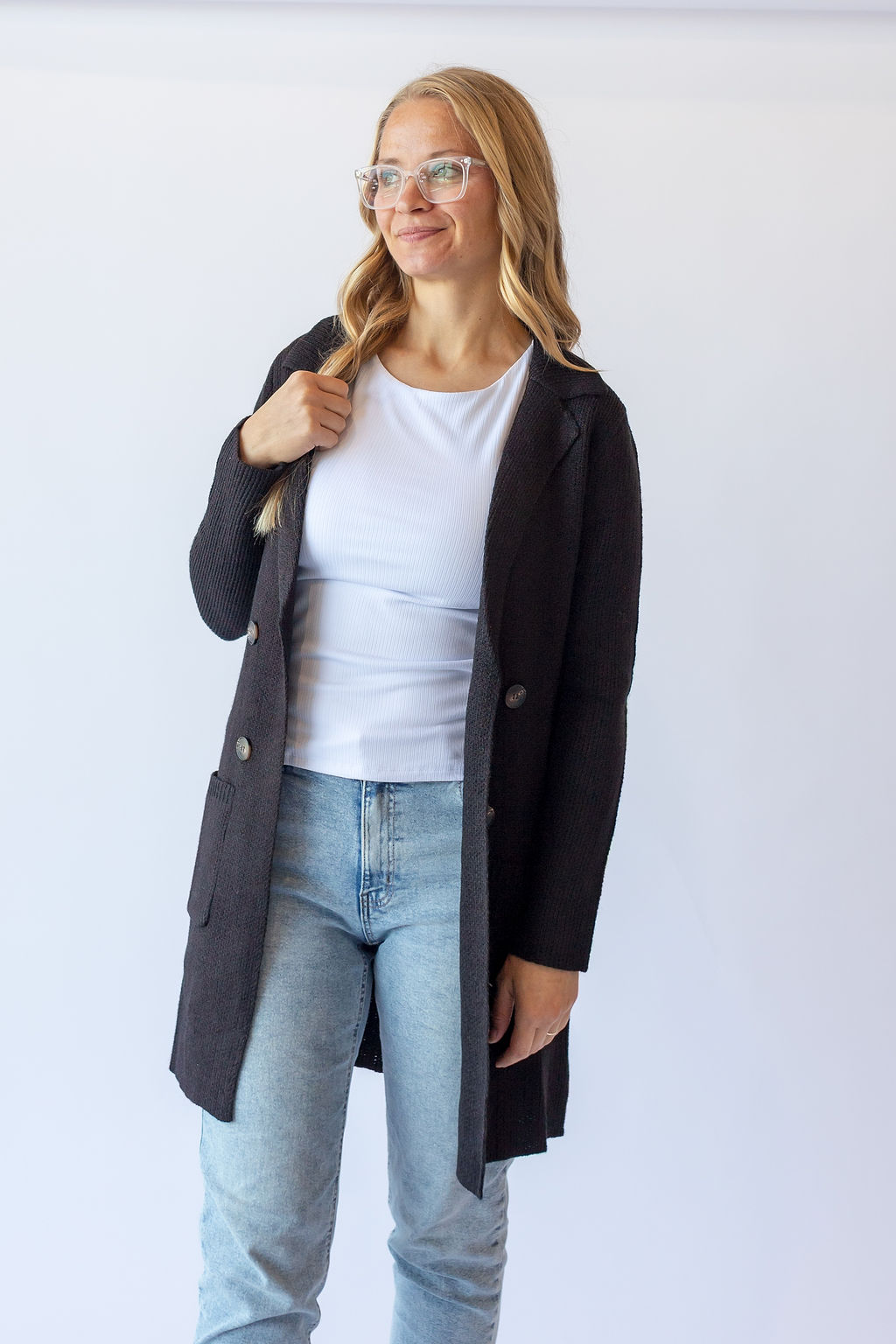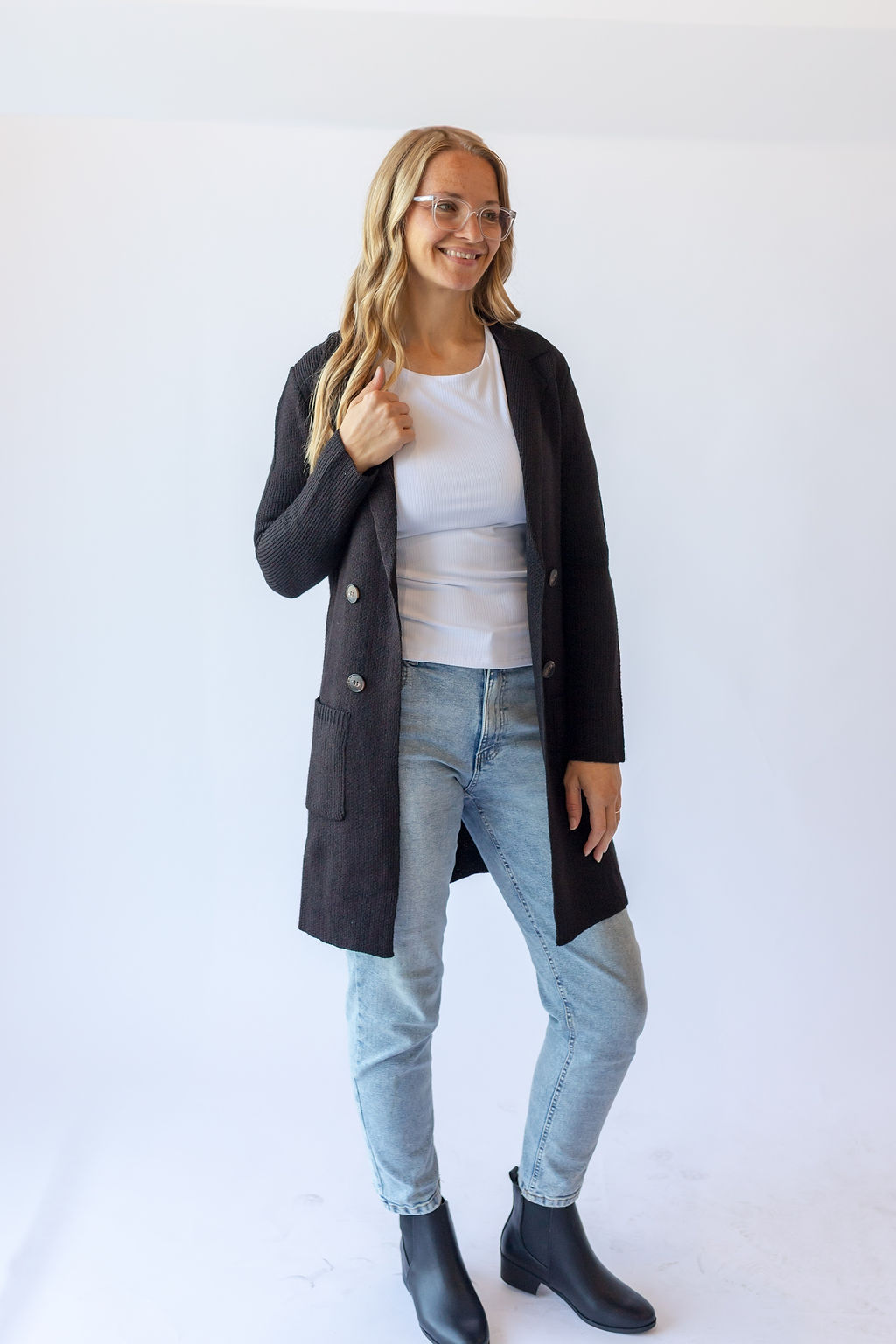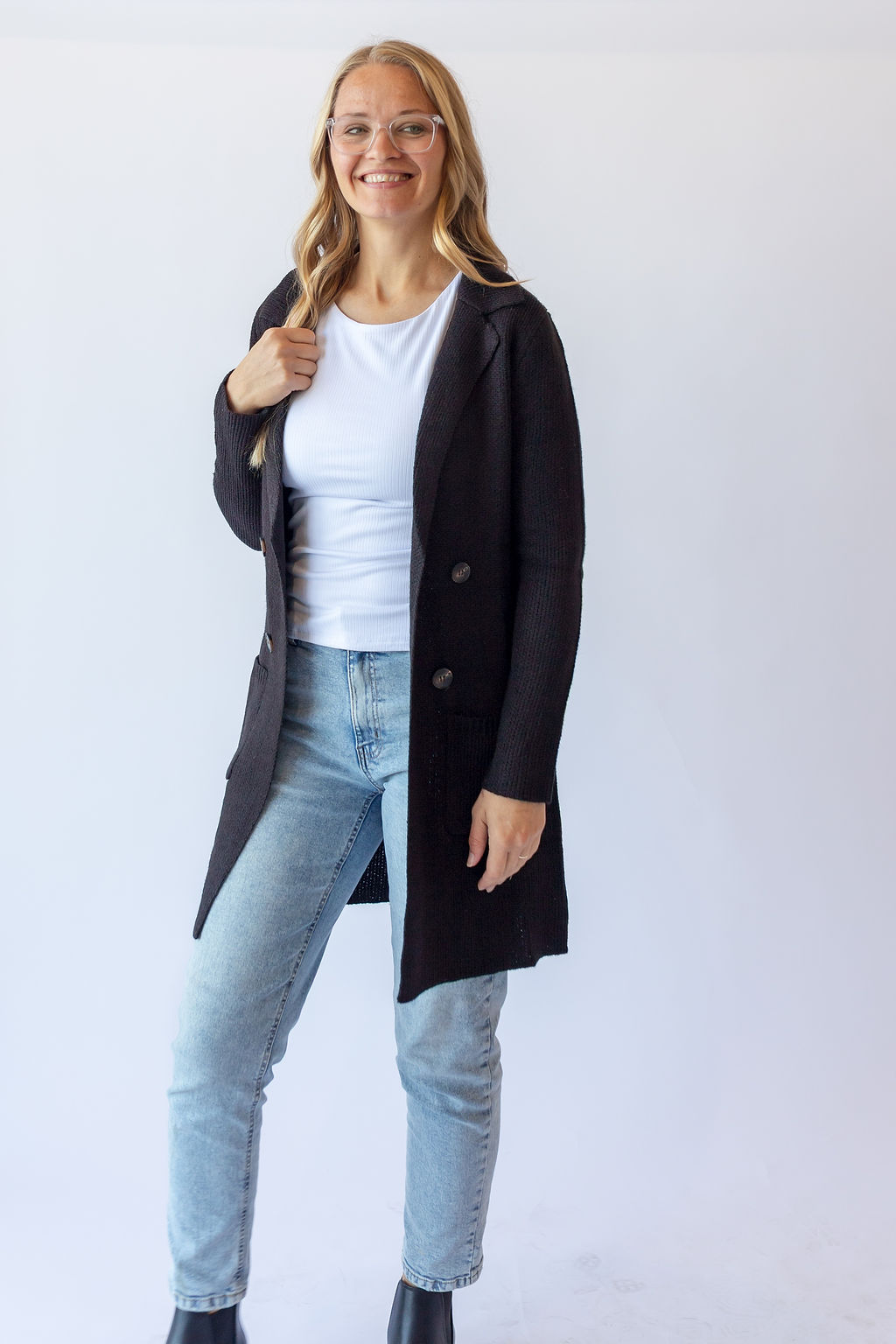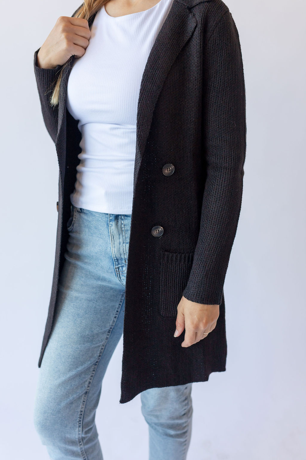 Long Sleeve Sweater Jacket -Black