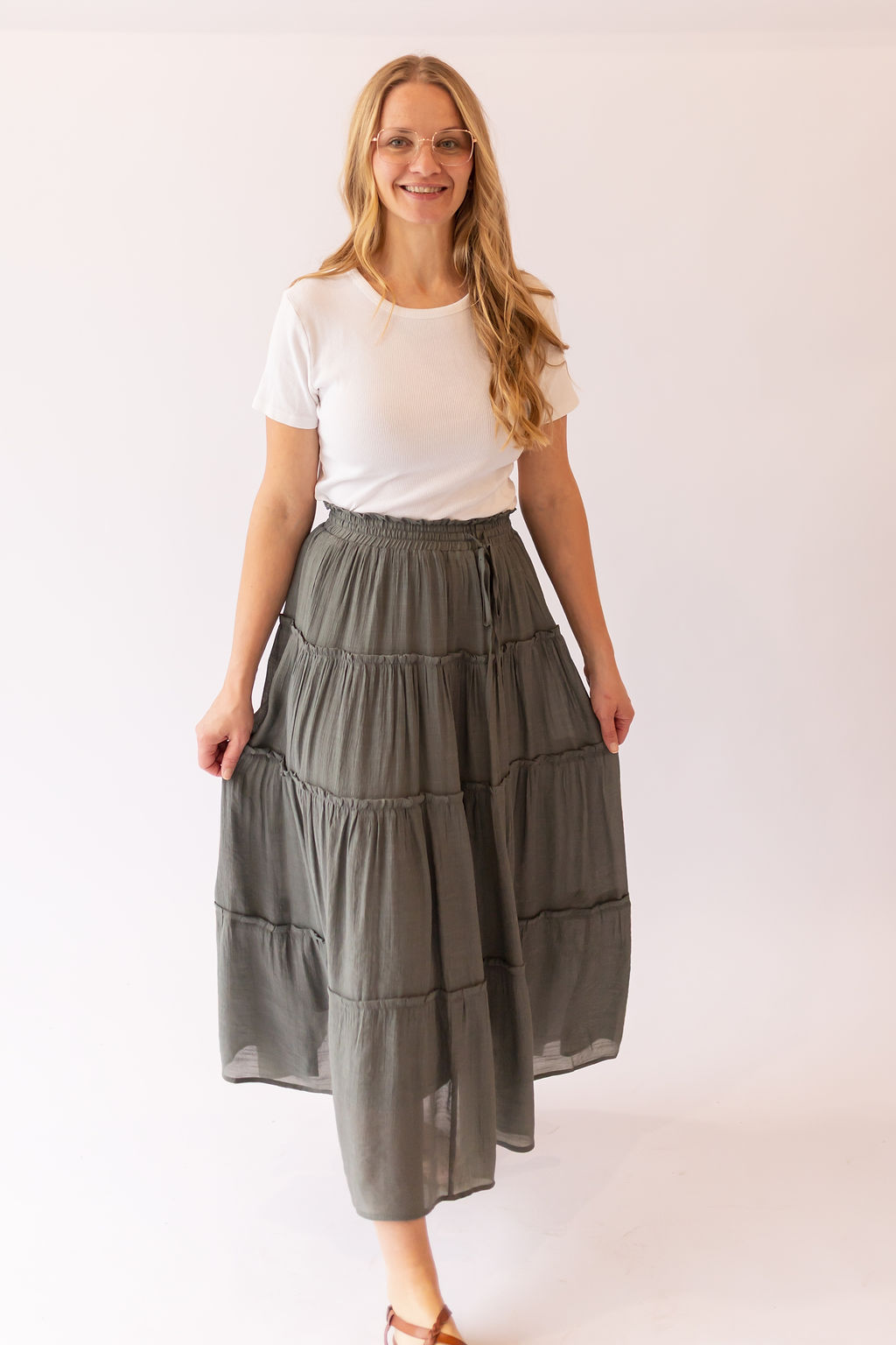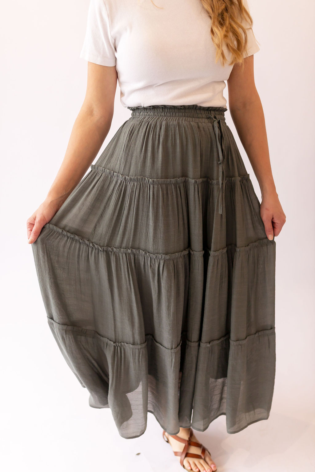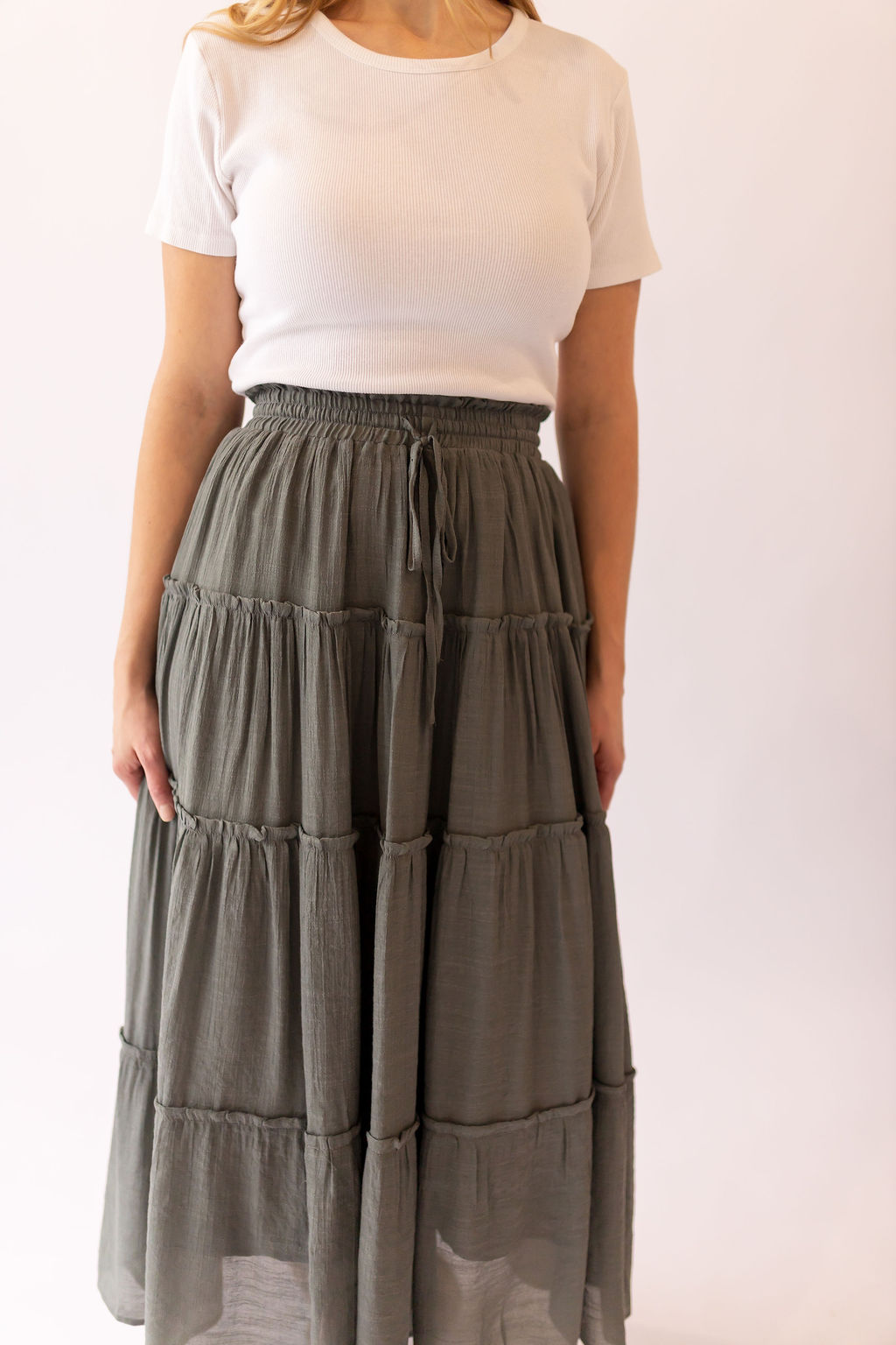 Sharon Tiered Maxi Skirt -Olive